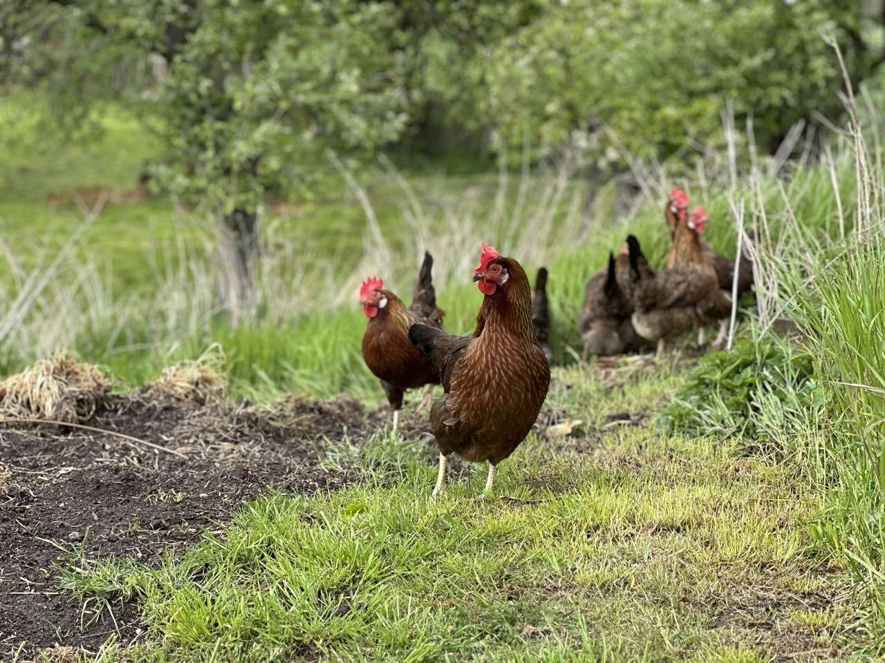 Die umliegenden Gärten werden derzeit für die Tierhaltung und den eigenen Anbau genutzt, was ein idyllisches Landleben ermöglicht und die Selbstversorgung unterstützt.