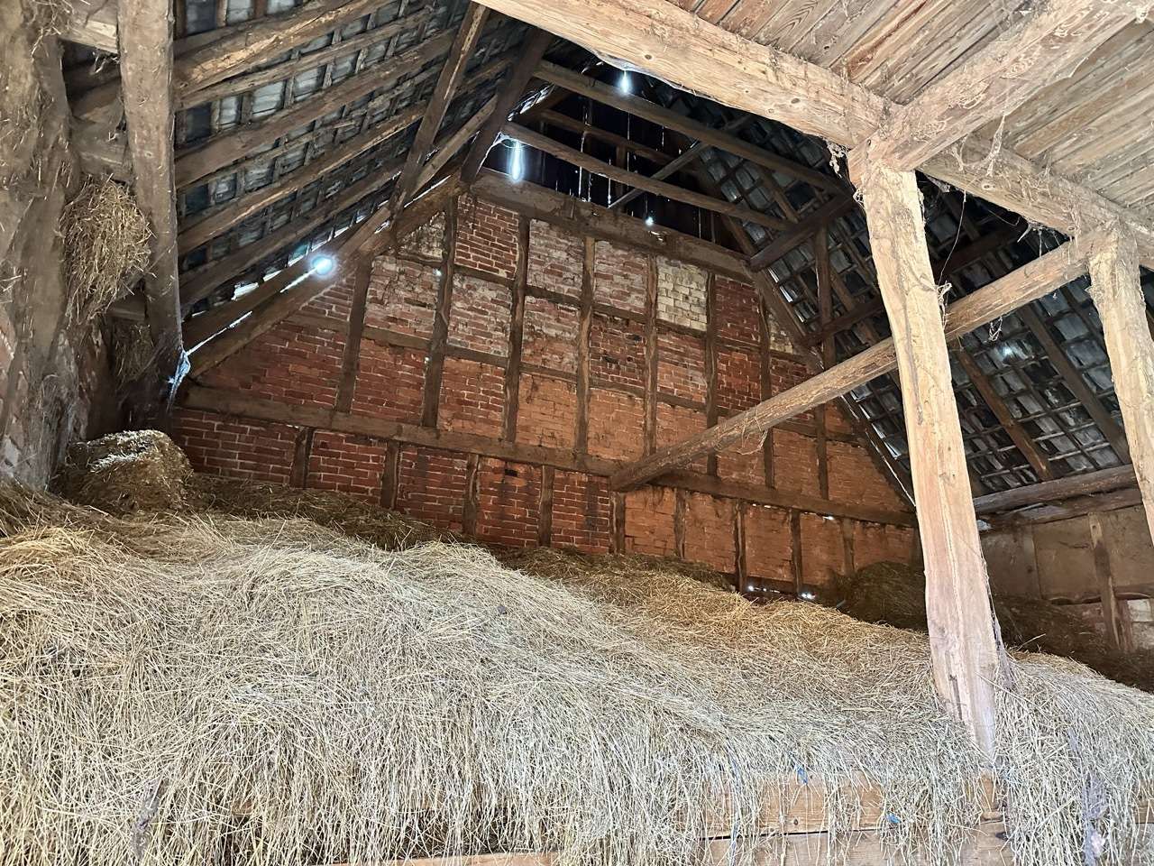 Der Hof besticht durch seine historische Aura und besitzt 5 Garagen und Nebengelasse, die reichlich Platz für Fahrzeuge und Arbeitsgeräte bieten. Die monumentale Scheune mit einer imposanten Höhe von 10 Metern ist ein echtes Juwel und steht unter Denkmalschutz. Ihre immense Größe prädestiniert sie für vielfältige Nutzungen, sei es als Lagerfläche, Werkstatt oder für Veranstaltungen oder zur Umnutzung für Wohnraum.